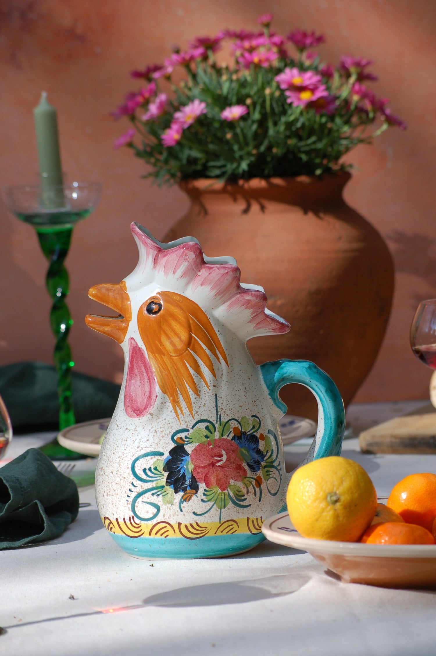 Sicilian ceramic carafe with BUONGIORNO quote and Amalfi Coast lemons