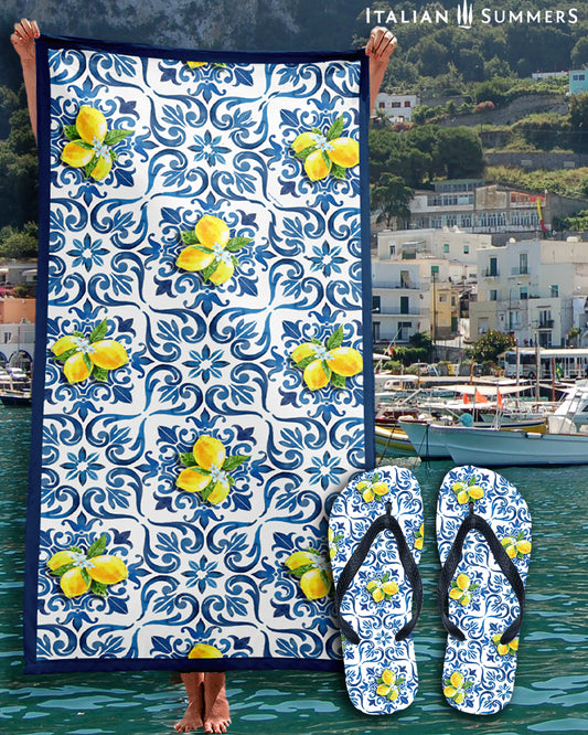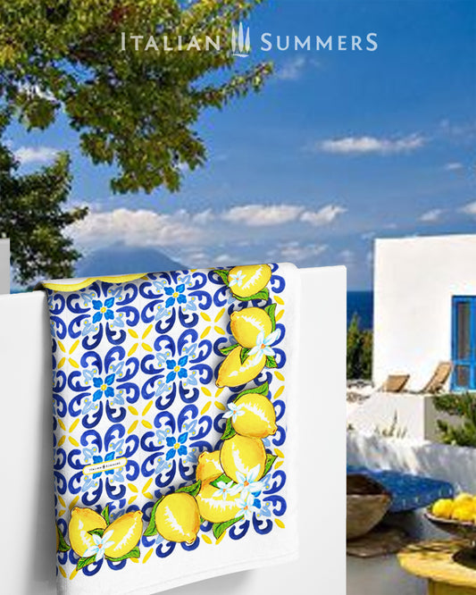 Beach towel Italy TILES and LEMONS, Italy beach towel, Italian Beach, Amalfi Coast, Positano, Capri, Amalfi Lemons, Sorrento Lemons