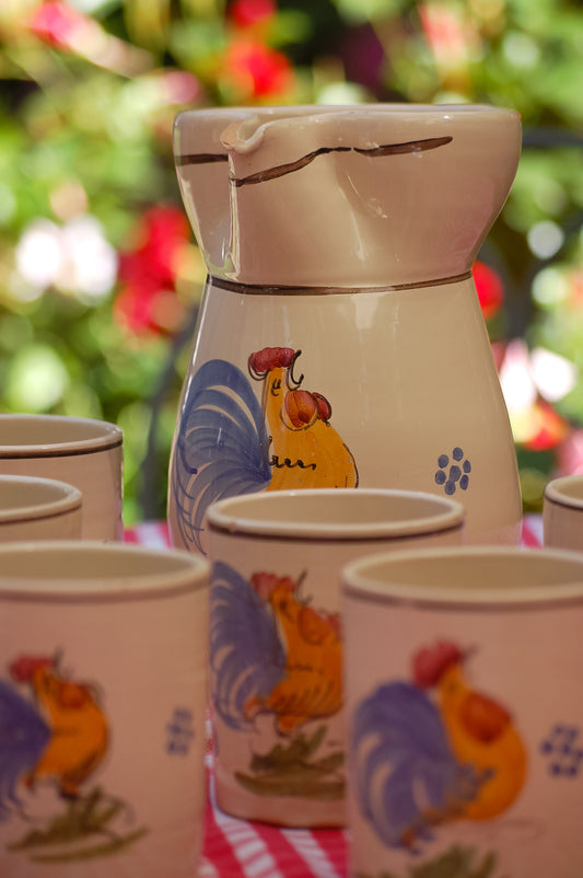 Vintage Apulia Ceramic Rooster Set – Carafe & 6 Mugs (1980s)