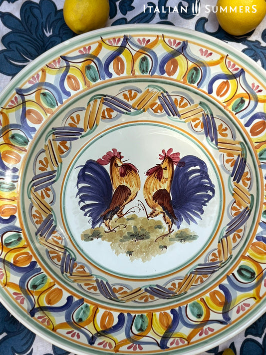 Vintage Apulia Maiolica Serving Platter – Rooster Theme (1970s)