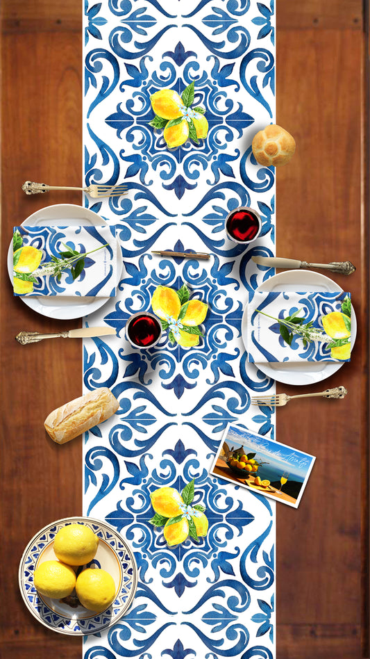 Table Runner SOGNO D'AMALFI by Italian Summers, made to order, Mediterranean style, inspired by the Maiolica domes of the enchanted Coast of Amalfi