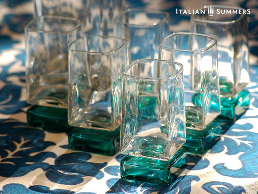 Vintage 1960s-70s Italian green glass Carafe and 6 Tumblers set, Bormioli of Parma, made in Italy