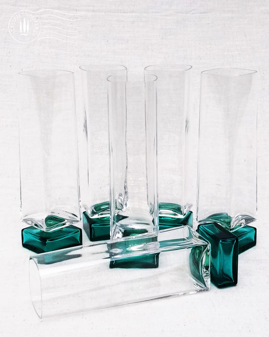 Vintage Bormioli Monet flutes Set of Five | Green Foot Glasses | 70s Italian Barware | Mid Century Modern Home Decor | Whiskey or wine Glasses (Copy)