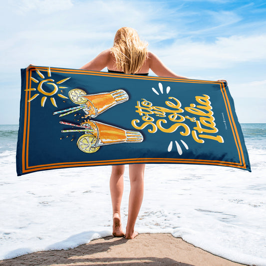 Under the Italian Sun beach towel,Sotto il Sole d’Italia Beach Towel, Italian Summer Towel with Spritz Glasses, Italian vacation towel