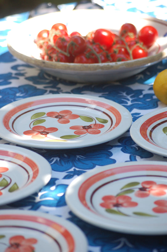 Vintage Italian Ceramic Plates Set of 6 – Hand-Painted Flowers (1960s-70s)