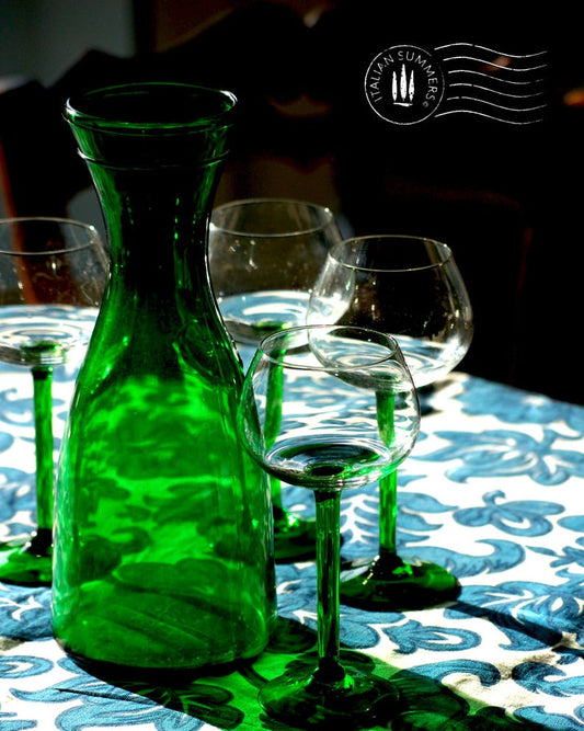 Vintage Emerald Green Wine Carafe & 4 Sculptural Goblets (1960s-70s)