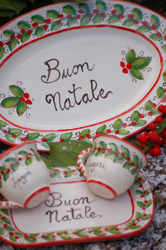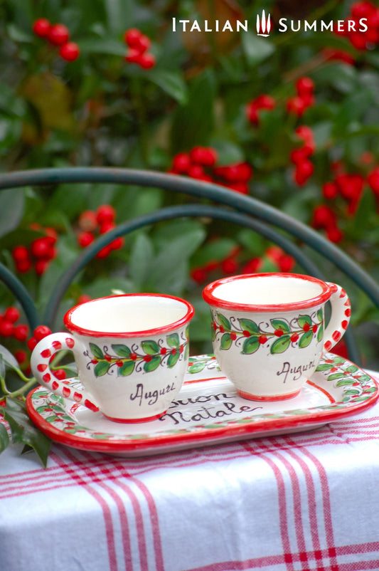 Italian Ceramic Espresso Set – “Auguri” Cups & “Buon Natale” Tray, Sicily
