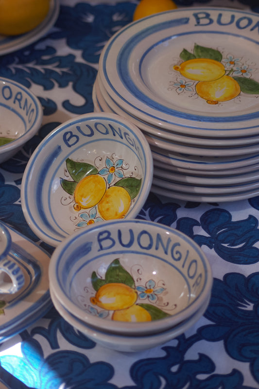 Italian ceramic plate with Amalfi Coast lemons and Buongiorno text