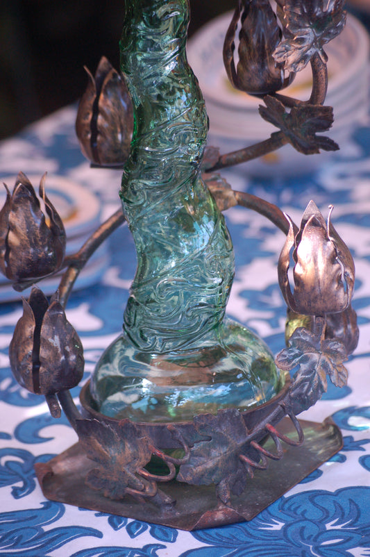 Italian vintage 1960s wrought iron candelabra and wine display, Chianti Empoli genie bottle | Italian décor | Italy rustic décor | Italian chandelier