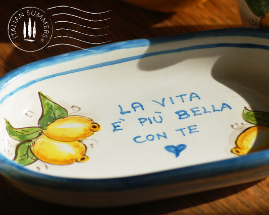 Italian Espresso Set with Amalfi Coast lemons La VITA e' piu BELLA con te