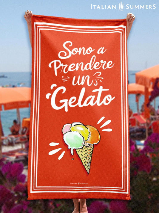 Italian Gelato Beach Towel, “Sono a Prendere un Gelato”, Gelato Cone Design – Italian Summer Vibes beach towel – Italian vacation towel
