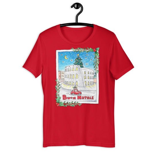 Italy Christmas t-shirt Buon Natale Roma, little Vintage Italian car, Christmas tree and Coliseum