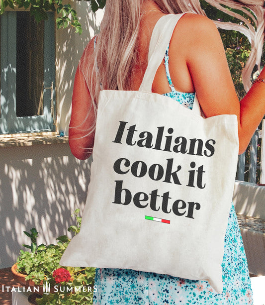 Italy Tote Bag - Italians cook it better, Travel tote, Italy quote, Italian cooking tote, Italian pride, Amalfi Coast bag, Positano