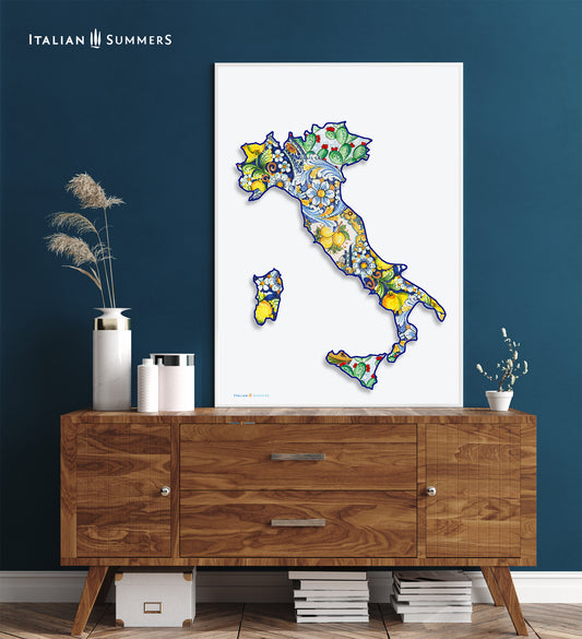 Italy Maiolica Poster, Majolica tiles, Italian map, Italy, Italian Tiles Poster