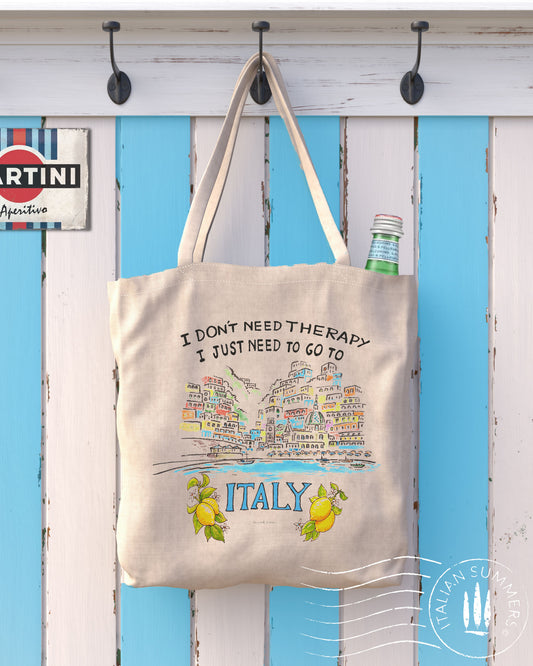Italy Tote Bag - I Don't Need Therapy I just need to go to ITALY, POSITANO BEACH, Amalfi Coast bag, Positano