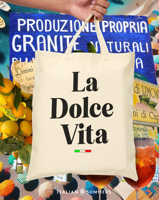 Italy Tote Bag - La Dolce Vita, Travel tote, Italy quote, Italian cooking tote, Italian pride, Amalfi Coast bag, Positano