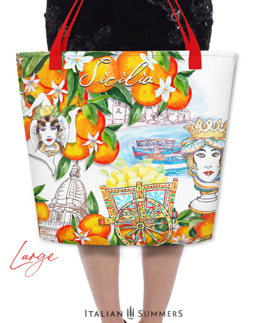 SICILY tote | Italy tote Large, Sicilian oranges, Sicilian style, Italy traveler, Italy lovers, Italy theme, Sicily theme