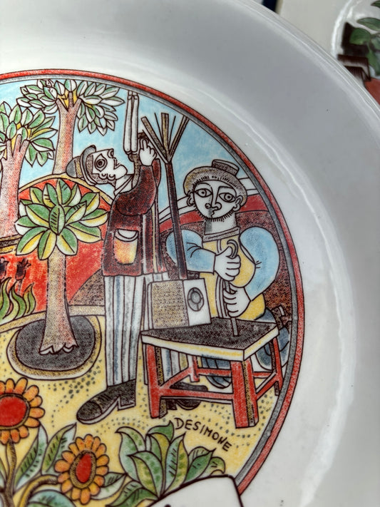 Today, these plates are cherished pieces of mid-century Italian folk art, sought after by collectors of vintage Autogrill memorabilia, De Simone ceramics, and Italian cultural heritage. Each 25 cm (9.8 inch) plate is a unique piece of history, perfect for display as museum-quality wall art or as a conversation-starting addition to your Italian kitchen decor.