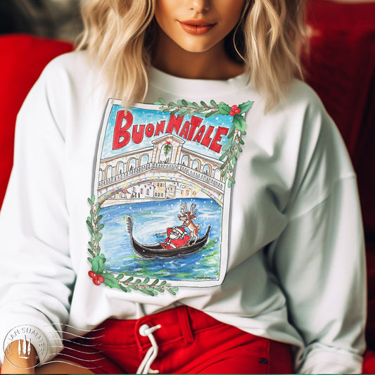 Christmas in Venice Sweatshirt – Santa & Rudolph Gondola Graphic