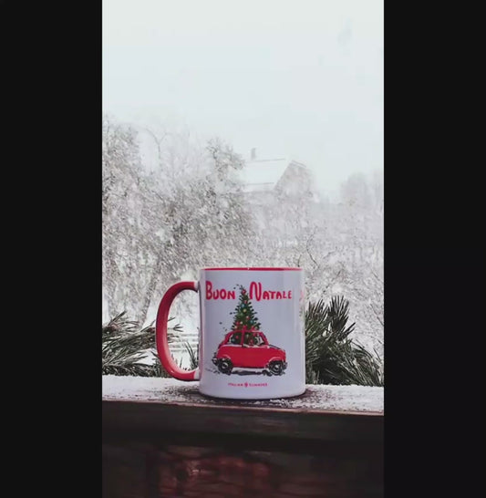 Italian Christmas Mug – Red little Vintage Italian car with Christmas Tree & Buon Natale