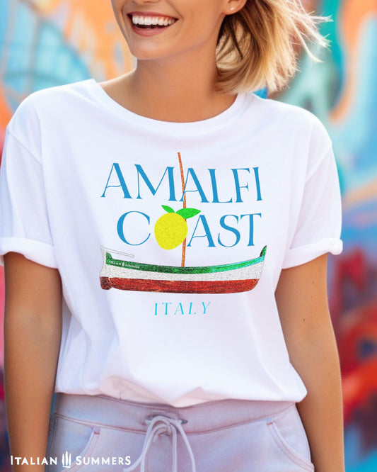 T-Shirt AMALFI COAST – Italian Gozzo Boat with Lemon – Comfort Colors