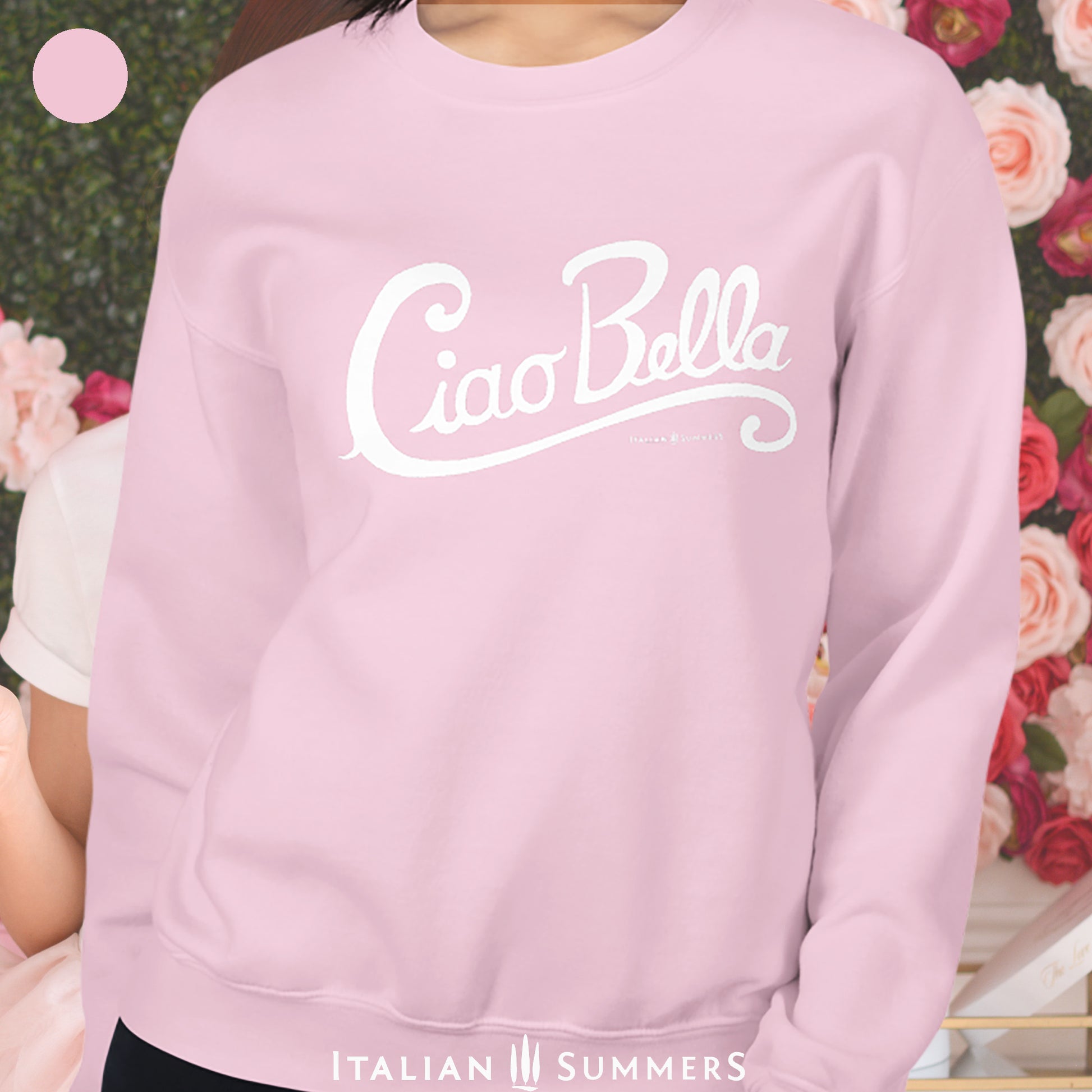 Say it with style! This soft and cozy sweatshirt features the classic Italian greeting "Ciao Bella!" (Hello Beautiful!). Whether you're greeting friends, celebrating Italian culture, or just feeling fabulous, this sweatshirt brings Italian charm to your everyday wardrobe.
