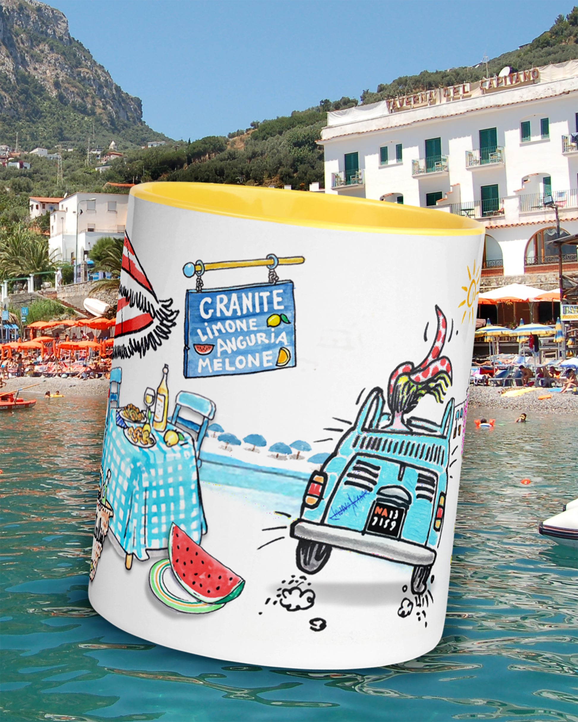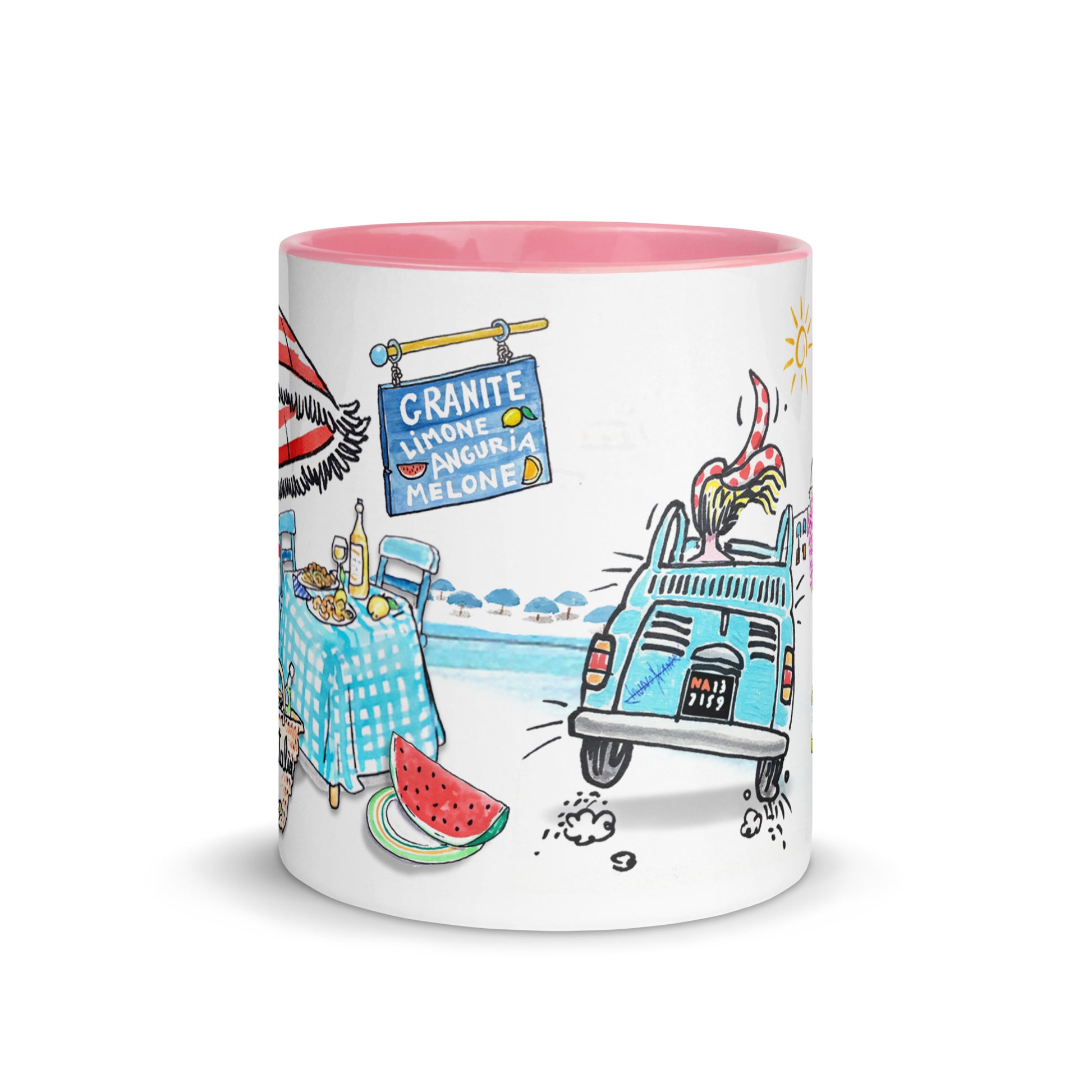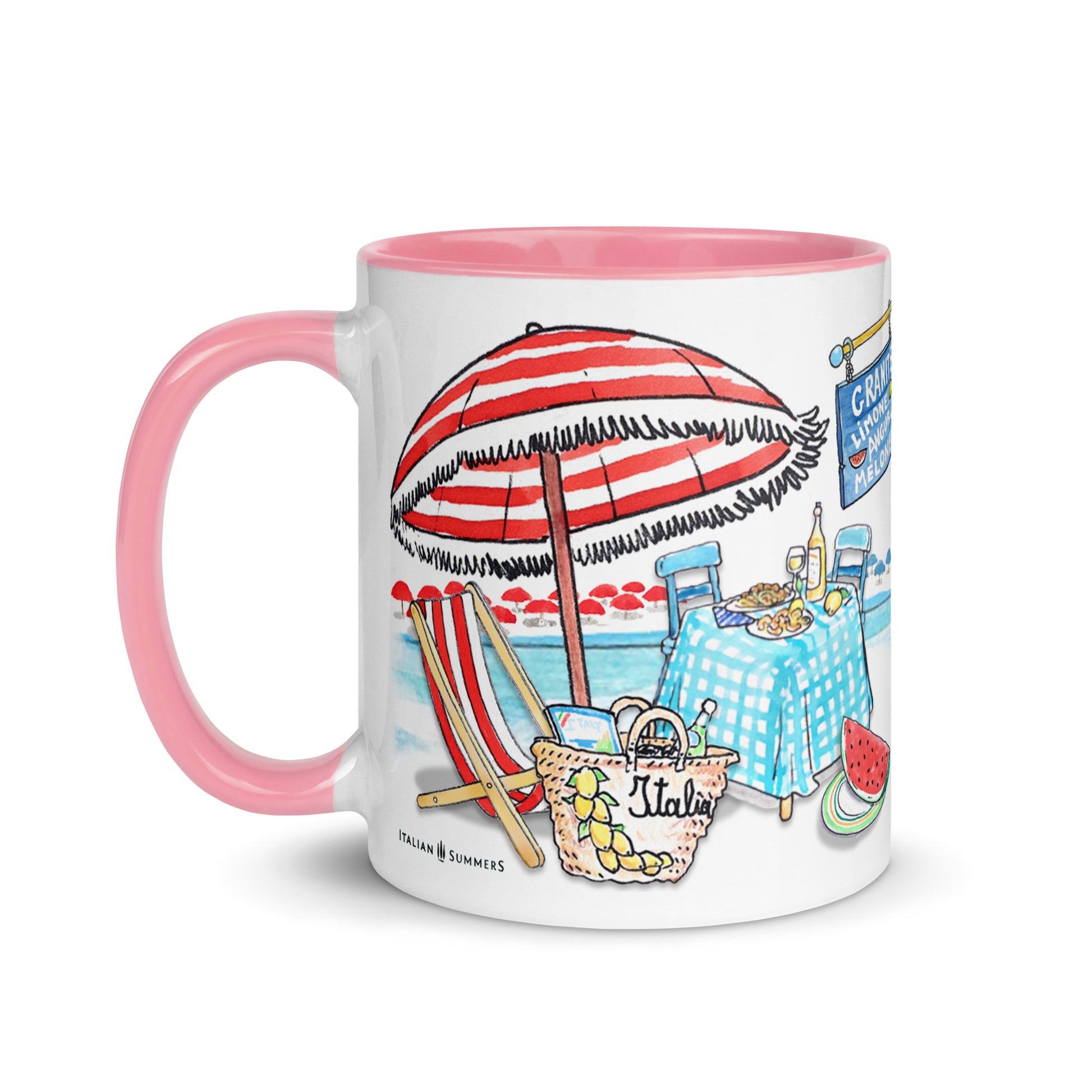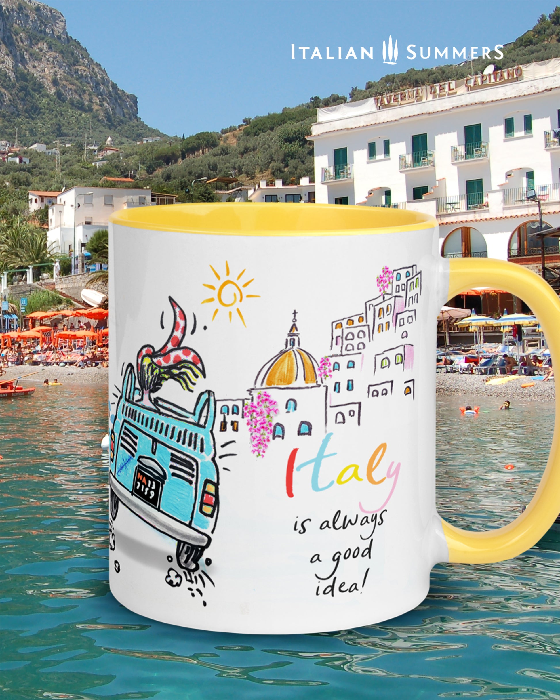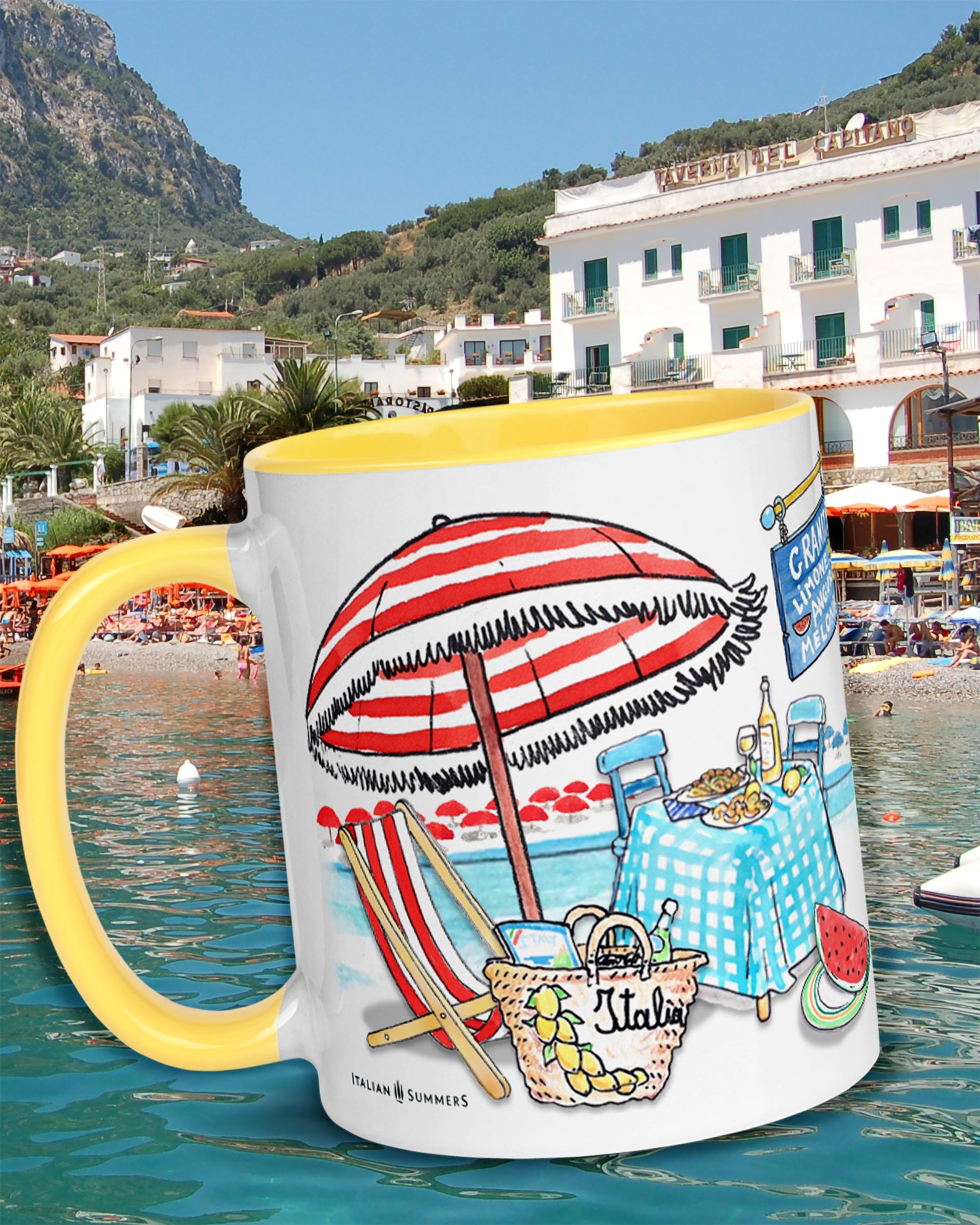 "An Italian Summer" With the little space that there is on this mug we tried to capture a few of the tipical Italian Summer scenes as we witness them in the little fishermen villages on the coast of Italy, on the islands and on the lakes. We could fill a book with summers scenes and summer memories. It is true right?! We all have our Italian Summers memories.